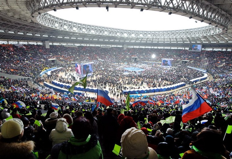 普京支持者13万人在卢日尼基体育馆举行了当天最大规模的挺普活动