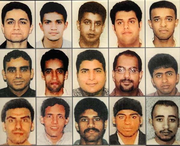 当地时间8月31日,华盛顿新闻博物馆推出纪念9·11恐怖袭击十周年展览,FBI为展览提供了19名劫机分子照片,恐怖袭击元凶露真容。图为19名劫机分子照片。